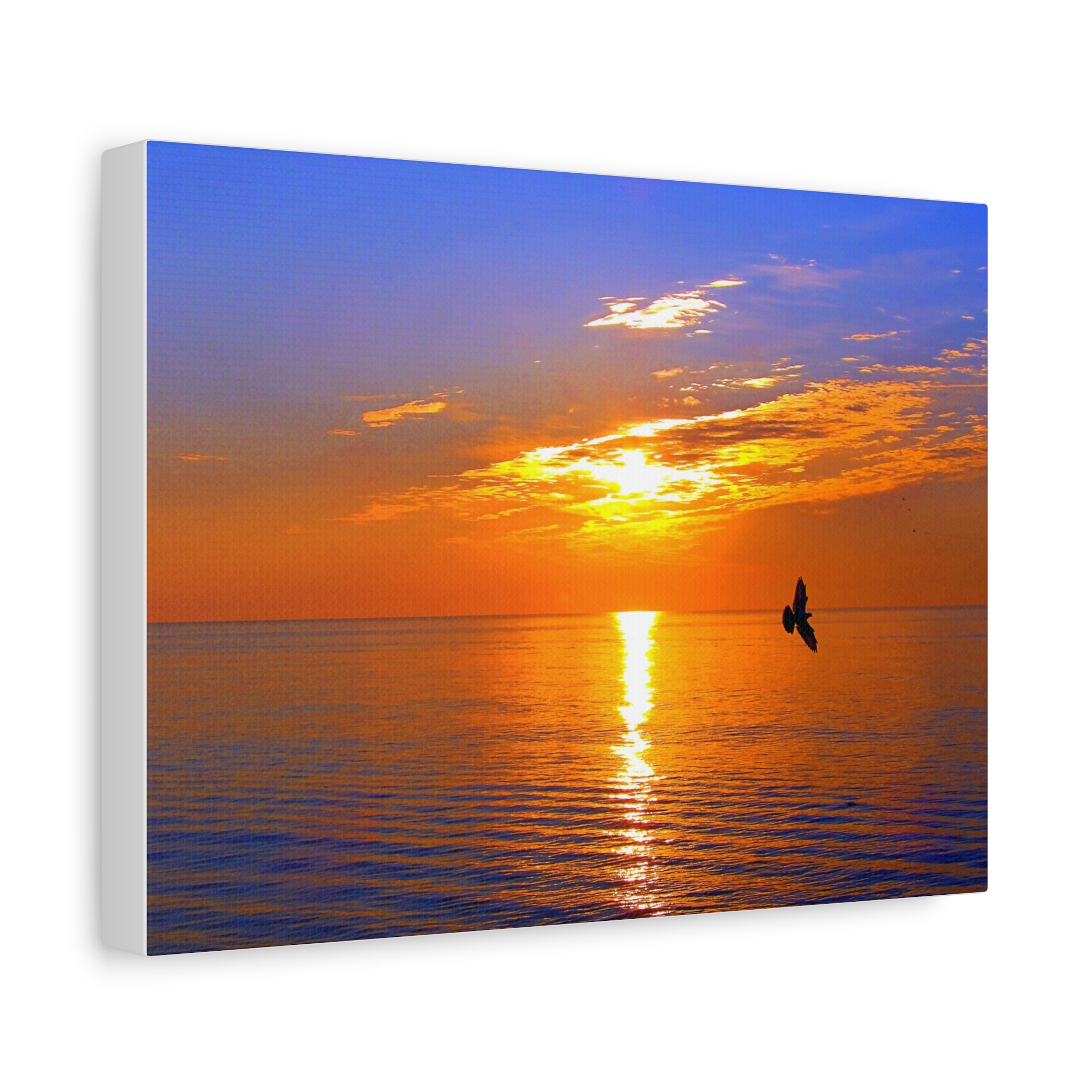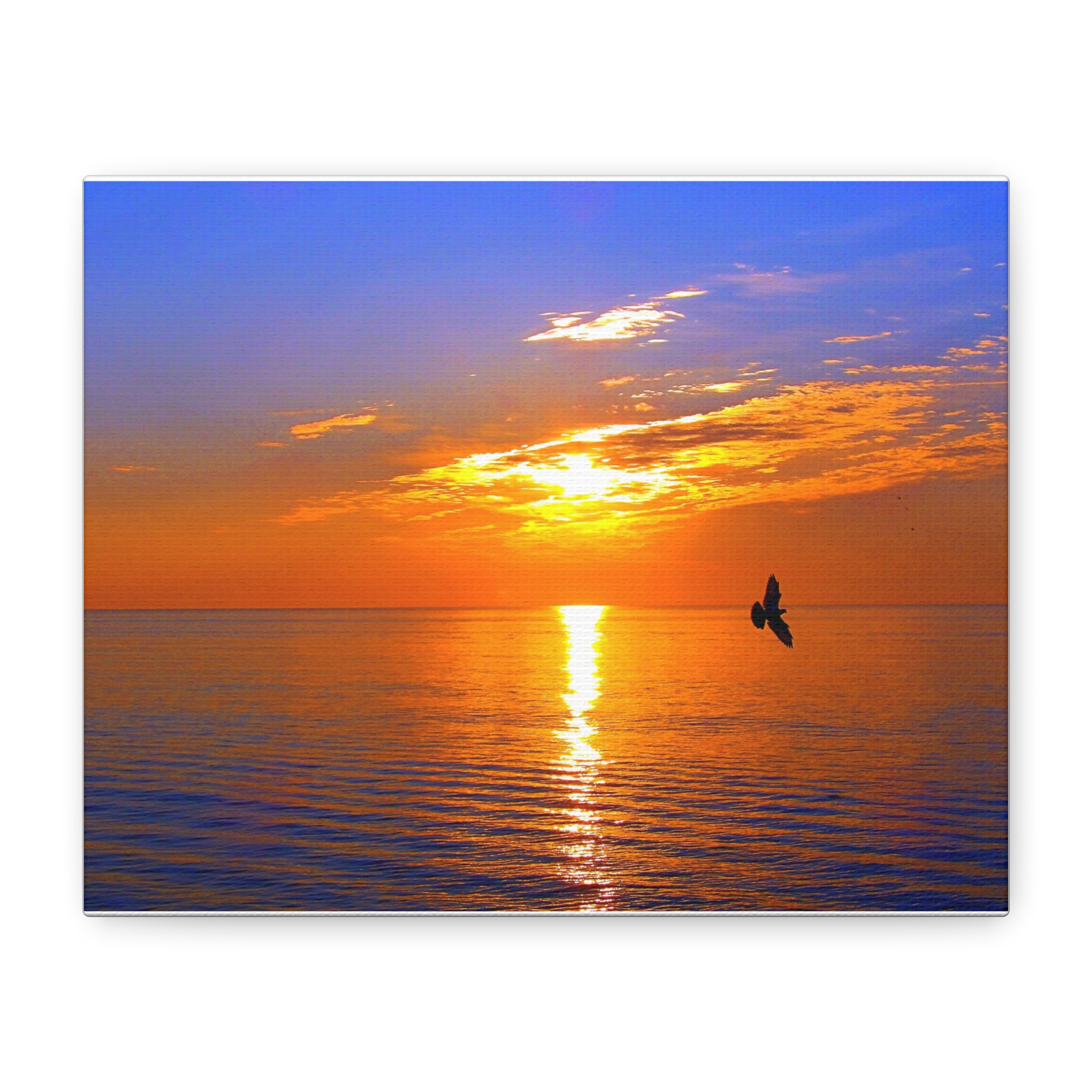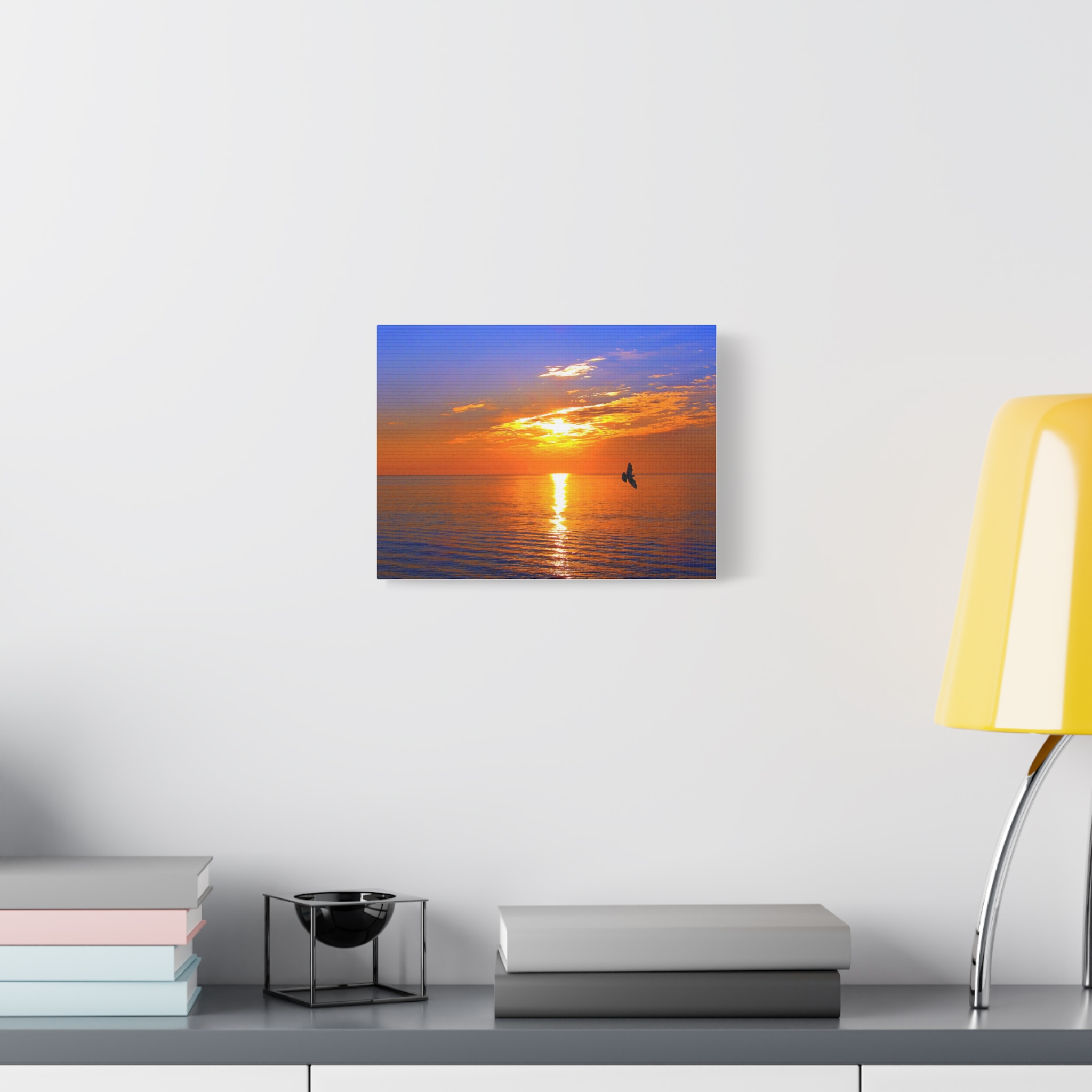 Transform your space into a serene sanctuary with this stunning Stretched Canvas. Featuring a breathtaking sunset over tranquil waters, this piece radiates warmth and calmness. Perfect for home decor, it effortlessly enhances living rooms, bedrooms, and office spaces alike. Ideal for anyone seeking to infuse their ambiance with peaceful vibes, it makes a wonderful gift for nature lovers, art enthusiasts, or anyone wanting to add a touch of beauty to their surroundings. Celebrate occasions like housewarming parties, weddings, or simply treat yourself to this captivating artwork. It’s a delightful way to bring a slice of serene nature indoors during any season or occasion.
